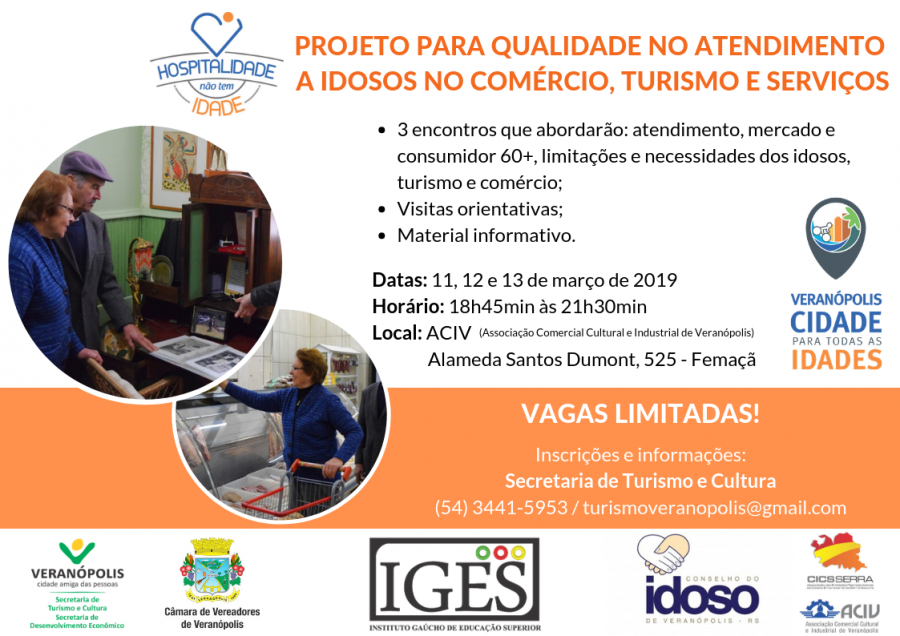 Em março será realizada a segunda edição do projeto de conscientização à qualidade no atendimento a idosos e turistas, voltada à empregados e empregadores do comércio, do turismo e prestadores de serviços em Veranópolis. Este projeto intitulado Hospitalidade não tem idade tem como objetivo tornar o município de Veranópolis uma cidade amigável às pessoas de todas as idades, adaptando suas estruturas e serviços para que sejam acessíveis à todos, além de melhorar a qualidade do atendimento. A dinâmica desta capacitação compreende 3 encontros, visitas técnicas e criação de materiais informativos. Nos encontros serão abordados temas relacionados à qualidade no atendimento aos idosos, com suas capacidades e limitações, turismo e comércio, conhecimento da oferta turística do Município e região e tendências de mercado. Os workshops e visitas técnicas serão orientados por profissionais de diversos setores como psicopedagogia, geriatria, marketing e turismo. O projeto tem a coordenação de Lilian Zieger, mestre em Educação, autora da tese ‘Autonomia como fator de qualidade de vida para o idoso’ e Diretora do IGES – Instituto Gaúcho de Educação Superior; e palestrantes Dra. Berenice Werle, médica geriatra, vice-presidente da Sociedade Brasileira de Geriatria e Gerontologia SBGG-RS e integrante do projeto Veranópolis: Município para todas as idades – cidade amiga do idoso, e Martin Henkel, cofundador da SeniorLab Inteligência em Mercado 60+ e pesquisador do comportamento do consumidor sênior. Os encontros acontecerão dias 11, 12 e 13 de março a partir das 18h45min, na ACIV (Alameda Santos Dumont, 525 – Femaçã). A participação é gratuita e direcionada para empreendedores, empresários e colaboradores do comércio e prestadores de serviços de Veranópolis. Empresas com mais de cinco funcionários devem escrever no mínimo dois participantes, sendo um preferencialmente o responsável pela empresa (proprietário, sócio ou gerente geral). Participantes da primeira edição podem participar com novos colaboradores ou reciclagem de quem já participou. Vagas limitadas. As inscrições devem ser feitas diretamente com a Secretaria de Turismo e Cultura, na Casa Saretta ou pelo telefone (54) 3441-5953 ou [email protected]. O Projeto faz parte das ações propostas pelas Secretarias de Turismo e Cultura e de Desenvolvimento Econômico no Projeto Veranópolis Cidade para Todas as Idades, patrocinada pela CPFL Energia e conta com os apoios da Câmara de Vereadores, Conselho Municipal do Idoso, Sociedade Brasileira de Geriatria e Gerontologia – SBGG, Associação Veranense de Assistência em Saúde – AVES (Projeto Veranópolis Estudos em Envelhecimento) e Associação Comercial Cultural e Industrial de Veranópolis – ACIV. Conheça os ministrantes: LILIAN ZIEGER: Licenciada em Pedagogia pela Faculdade Porto Alegrense de Educação Ciências e Letras (1981); especializações em Psicopedagogia Clínica e Institucional (Faculdade Portal/RS), Supervisão Escolar (FAPA/RS) e Alfabetização e Literatura Infantil, mestrado em Politicas y Administración de la Educación - Universidad Nacional de Tres de Febrero (2009) - título revalidado como Mestrado em Educação pela Universidade Nacional de Brasília/Brasil e Doutorado em Psicologia Evolutiva e da Educação pela Universidad de Santiago de Compostela/Espanha (2010), com a tese ‘Autonomia como fator de qualidade de vida para o idoso’. Cursa Doutorado em Epistemologia e História da Ciência (UNTREF/Argentina). Autora de 30 livros e vários artigos científicos publicados em revistas e anais de encontros/seminários/congressos. Em 2015, lançou os livros "Uma história de arrepiar até espinho", para crianças do Ensino Fundamental e "Supervisão em Ação". Em 2017, assumiu a direção geral da Revista Científica IGES em Revista. Em 2018 lançou a obra "Bom Fim, 357". Trabalha com a análise do desenho humano há mais de doze anos e ministrou inúmeros cursos na área. DRA. BERENICE WERLE Possui graduação em Medicina pela Pontifícia Universidade Católica do Rio Grande do Sul (1997). Atualmente é membro do corpo clínico do Hospital Moinhos de Vento, Diretora Médica no Núcleo de Geriatria e Gerontologia. Tem experiência na área de Medicina, com ênfase em Geriatria e em Cuidados Paliativos, atuando principalmente nos seguintes temas: infecção, idoso, risco cardiovascular, cuidados paliativos. Atual Primeira Vice-Presidente da Sociedade Brasileira de Geriatria e Gerontologia – SBGG – e colaboradora das pesquisas da longevidade no Município de Veranópolis e do Projeto Veranópolis: Município para todas as idades - cidade amiga do idoso. MARTIN HIEKEL Martin Henkel, 50, publicitário com especializações em marketing e branding, observa e estuda a nova terceira idade sob a ótica do consumo há cinco anos. Neste tempo ele fundou a SeniorLab Mercado e Consumo 60+ onde acumulou conhecimentos e criou ambiente onde foi possível preencher as lacunas que as ciências do consumo desconheciam sobre o mercado sênior. Este conceito e metodologia batizou de Aging in Market. Escreve para o Jornal Zero Hora sobre mercado e consumo 60+, é colunista da Revista Amanhã e Mundo do Marketing e da Revista Envelhecer de Portugal. É curador de conteúdo da Geronto Fair e um dos criadores do 1º Seminário de Marketing 60+. Propõe uma nova atitude para marcas, produtos e serviços em relação ao consumidor 60+. ENCONTROS do Projeto de Conscientização à Qualidade no Atendimento ao Idoso e ao Turista Dias 11,12 e 13 de março das 18h45min às 21h30min Local: ACIV – Alameda Santos Dumont, 525 – Femaçã Inscrições: Secretaria de Turismo e Cultura - Casa Saretta - BR 470, km 177 (54) 3441-5953 / [email protected]