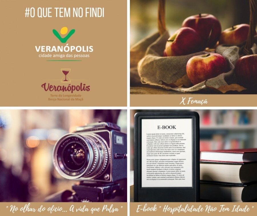 strong Confira a programação do final de semana em Veranópolis! Sexta 12/04 - SASQUATCH JAM – abertura do bar às 18h30min, no Zeppelin rock bar, Av. Pinheiro Machado, 770 (térreo da Soal). Informações: (54) 99984-4360 - X Femaçã, no Parque Municipal José Bin (Alameda Santos Dumont - Bairro Femaçã). Programação: 18h - Abertura oficial da 10ª Festa Nacional da Maçã e Feira Agroindustrial de Veranópolis. Após, abertura para visitação (Entrada Gratuita). 20h - Salvagni Big Band, no Palco Bin. 20h30min - Fabiano Dias, no Palco Fuji. 22h - César Oliveira & Rogério Melo, no Palco Gala. Informações: (54) 3441-2217 ou www.femaca.com.br Sábado 13/04 - X Femaçã, no Parque Municipal José Bin (Alameda Santos Dumont - Bairro Femaçã). Programação: 08h - Campeonato de Vôlei de Areia (dia 1), no Clube Caça e Pesca. Inscrições: (54) 99905-9630 – Emeline. - 7ª Mini Rústica e Desafio 20km SAMEVE, no Clube Caça e Pesca. Inscrições: (54) 98408-2066 – Chumbinho. - Passeio 4x4, com saída do Parque da Femaçã. Inscrições: (54) 99972-1590 – Batirolla. 09h - 1º fórum de desenvolvimento agropecuário, no Auditório da ACIV. Entrada gratuita. Tema: Rastreabilidade; Sucessão familiar; Produção orgânica; Potencialidades do Município. 10h - Abertura do parque para visitação. Ingresso: R$ 10,00. Meia Entrada: R$ 5,00 (idosos e estudantes mediante comprovação). 11h - Campeonato Estadual Trio de Bocha (dia1), no Salão São Pelegrino. Inscrições: (54) 99972-2956 – Loio. 11h30min - Flash and Bone, no Palco Fuji. 13h - Léo e Jeff, no Palco Bin. 13h30min - Enlace Trio, no Palco Fuji 15h - Coro Municipal de Veranópolis, no Palco Bin. 15h30 - Mauri e JP, no Palco Fuji 16h - Lançamento do e-book "Hospitalidade não tem idade", no Espaço da Longevidade. 17h - Casca, Xande e Maicá, Palco Bin. 17h30min - Cláudio e Tassi, no Palco Fuji. 19h - Cia Teatral Tem Gente no Palco - ESPETÁCULO LA PRIMA CANZONE, no Palco Bin. 19h30 – TRIO dimensional, no Palco Fuji. 23h30 - Roupa Nova - Abertura dos Portões: 21h, no Palco Gala. Antes e depois do show - Dj Edy Matheus. Informações: (54) 3441-2217 ou www.femaca.com.br Domingo 14/04 - Festa em Honra Santo Expedito, na Capela Santo Expedito – Bairro Universal – Estrada Buarque de Macedo. Informações: Secretaria da Paróquia – (54) 3441-1604 - 8º Encontro de Carros Antigos e AVIÕES - das 08h30min às 17h30min, no Aeroclube de Veranópolis. Show com banda, praça de alimentação, malabares e perna de pau, mercado de pulgas, exposição de aviões e de carros antigos. Informações: Alfy – (54)99118 - 8434 / Gustavo – (54)99153 - 2038 / Mauro – (54) 99908 - 7056 - X Femaçã, no Parque Municipal José Bin (Alameda Santos Dumont - Bairro Femaçã). Programação: 08h - Campeonato de Vôlei de Areia (dia 2), no Clube Caça e Pesca. Inscrições: (54) 99905-9630 – Emeline. 10h - Abertura do parque para visitação. Ingresso: R$ 10,00. Meia Entrada: R$ 5,00 (idosos e estudantes mediante comprovação). 11h - Adão Léo Sax, no Palco Bin. - Campeonato Estadual Trio de Bocha (dia 2), no Salão São Pelegrino. Inscrições: (54) 99972-2956 – Loio. - P remiação do Concurso de Vitrines da X Femaçã, no Palco Bin. 11h 30min - Duo Hype, no Palco Fuji. 13h - Orquestra Cotiporã, no Palco Bin 13h30min - Enlace Trio, Palco Fuji. 14h - White Hawks, no Aeroclube de Veranópolis. - Apresentação do filme "No olhar do ofício... A vida que Pulsa", no Auditório da ACIV. Entrada gratuita. Realização: Centro Cultural de Ver anópolis 15h - Coro Sementes do Amanhã, no Palco Bin. 15h30min - Frizon Brothers, no Palco Fuji. 16h – Guerrilla, no Aeroclube de Veranópolis. 17h - Beatles no Acordeon, no Palco Bin. 17h30min - Maurício e Roger (Purpura), no Palco Fuji. 19h - Sistema Antigo, no Palco Bin. 20h - Encerramento da Feira Comercial. Informações: (54) 3441-2217 ou www.femaca.com.br Quinta 18/04 - Dia de Campo "Tecnologias para Altas Produtividades na Fruticultura de Clima Temperado" - das 8h45min às 16h30min, Salão da Comunidade de Lajeadinho. Informações: Secretaria de Desenvolvimento Econômico (54) 3441-1477 Diariamente - Casa Saretta - Centro de Atenção ao Turista BR 470, km 177, nº 2201. Informações: (54) 3441-5953. Segunda a sexta-feira das 8h30min às 17h Sábados e Domingos das 10h às 16h - Casa Saretta Artesanato. BR 470, km 177, nº 2201. Informações: (54) 3441-7695 Segunda a sexta-feira das 8h30min às 11h30min e das 13h30min às 17h Sábados e Domingos das 10h às 16h De segunda a sexta-feira - Biblioteca Pública Mansueto Bernardi. Av. Pinheiro Machado, 770 - centro (hall de entrada da SOAL). Informações: (54) 3441-7615. Segunda a sexta-feira das 8h30min às 17h Toda Quarta e Sábado - Feira Ecológica com agricultores de Veranópolis, no caramanchão ao lado do Salão N.S. de Lourdes: Quartas-feiras das 12h30min às 16 horas / Sábados das 7 às 12 horas. Informações Secretaria de Desenvolvimento Econômico: 3441-1477