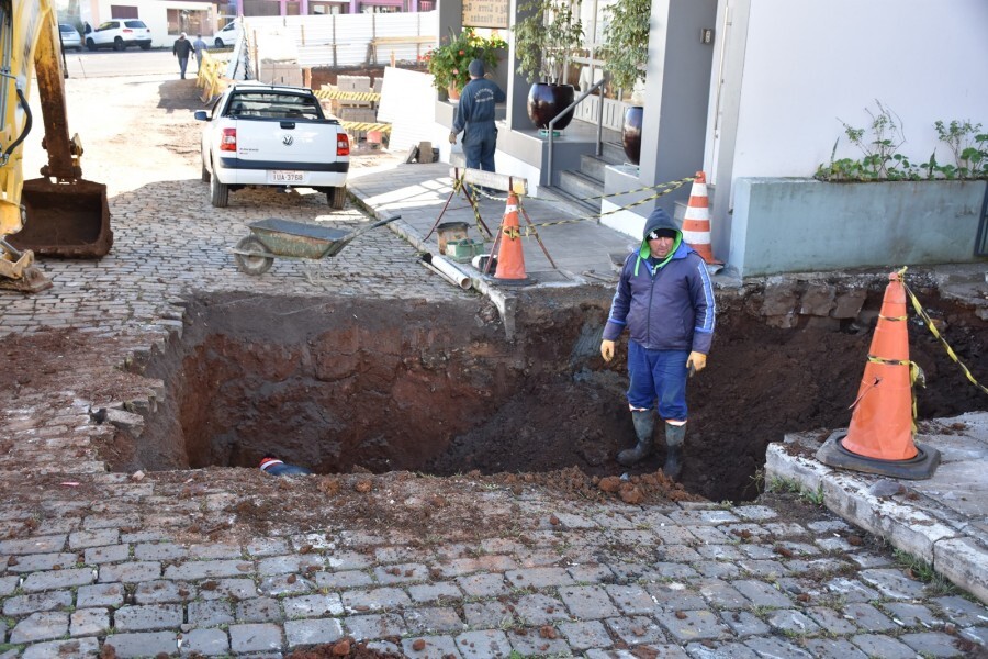 Equipe da Secretaria de Infraestrutura e Meio Ambiente está trabalhando, nesta semana, em mais uma rede de saneamento. São aproximadamente 25 metros de manutenção da rede, localizada na rua João Missaglia, próximo a rua Júlio de Castilhos. Mais uma obra que contribui com a infraestrutura na Terra da Longevidade. em Fotos: Caroline Cesca/em