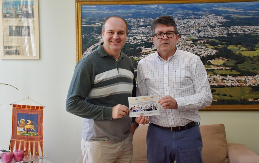 Nesta quinta-feira, 29 de agosto, o Prefeito Municipal Waldemar de Carli recebeu, em seu gabinete, Pr. Elias César Nalin Dorneles, Presidente da Associação Beneficente Bom Samaritano de Veranópolis. Na oportunidade, foi entregue o convite do casamento coletivo promovido pela Igreja Evangélica Assembleia de Deus BS Veranópolis, Belém/CADBRGS e Associação Beneficente Bom Samaritano de Veranópolis. São 12 casais que irão realizar sua união no dia 31 de agosto, a partir das 19h, em seu templo sede na Rua Antônio Tedesco Filho, 09, Bairro Valverde. em Foto: Caroline Cesca/em