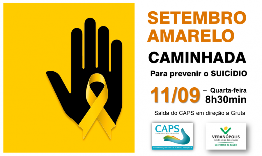 O mês de setembro na área da saúde veste-se da cor amarela, para falar sobre suicídio. Assunto pouco divulgado e que aflige muitas famílias. A Secretaria da Saúde de Veranópolis, através do CAPS, realizará uma caminhada em valorização da vida, para destacar esse assunto junto a comunidade. Atividade que ocorrerá na próxima quarta-feira, dia 11 de setembro. Essa caminhada terá saída do CAPS às 8h30min e seguirá em direção ao Salão Comunitário Nossa Senhora de Lourdes, onde acontecerá uma atividade de socialização. Contará com a participação dos pacientes do CAPS e dos alunos dos 9º anos das escolas municipais. Nesse dia, o CAPS estará proporcionando um almoço para os pacientes que participarem da atividade. E no dia 09 de setembro, segunda-feira no Salão de Atos do Colégio São Luiz Gonzaga, acontecerá uma roda de conversa dos profissionais do CAPS com os professores da rede de ensino do município com o tema: Promoção a vida. O suicídio é um fenômeno complexo que pode afetar indivíduos de diferentes origens, classes sociais, idades, orientações sexuais e identidades de gênero. Mas o suicídio pode ser prevenido. Saber reconhecer os sinais de alerta em si mesmo ou em alguém próximo a você, pode ser o primeiro e mais importante passo, para agir e evitar que o ato de suicídio aconteça. Participe desses eventos e fique mais informado sobre o assunto.