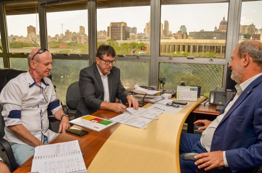 No dia 10 de março, o Prefeito de Veranópolis esteve em Porto Alegre, junto a Secretaria Estadual de Obras e Habitação - Departamento de Poço e Redes, para assinar o Termo de Cooperação que visa a perfuração de poços tubulares profundos para abastecimento de água para comunidades do interior do estado. Veranópolis será contemplada com a perfuração de dois poços artesianos nas localidades de Nossa Senhora do Caravaggio/Monte Claro e Nossa Senhora das Graças/São José da Terceira, visando o abastecimento de água para consumo humano, a fim de satisfazer as necessidades básicas e melhorar a qualidade de vida das famílias residentes no interior do município. A perfuração dos poços será realizada pela Companhia Riograndense de Saneamento - CORSAN, contratada através da Secretaria Estadual. O município de Veranópolis será responsável em fornecer o revestimento do poço, providenciar a documentação para perfuração e validação da água, realizar o cercamento do poço, promover o projeto da adução, reservação e distribuição da água, além de outras questões. Participaram desse ato o Secretário Estadual, José Luiz Stédile, o Prefeito de Veranópolis, Waldemar Der Carli, e o Coordenador de Compras do município, Alzir Sechi. Fotos: Divulgação - Secretaria Estadual