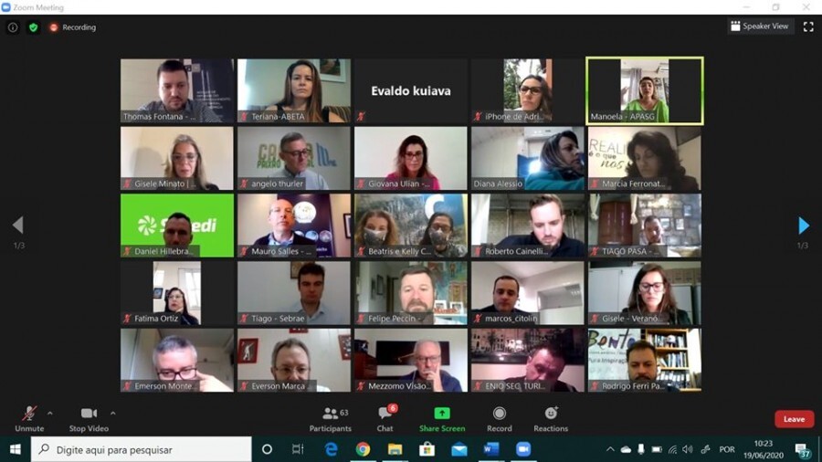 Naúltima sexta-feira, 19 de junho, a secretária de turismo e cultura Diana Alessio Tomiello e a turismóloga Gisele Martins participaram da primeira reunião virtual do Comitê de Retomada do Turismo na Serra Gaúcha. O Comitê tem como organizadores iniciais o G30 Serra Gaúcha, formada por grupo de empresários da região, facilitação em conjunto com Sebrae e participação da Governança Regional Atuaserra (Uva e Vinho), mais de 50 entidades, municípios turísticos e empresários preocupados com o turismo no pós-Covid na Serra Gaúcha (soma de Uva e Vinho, Hortênsias e Campos de Cima da Serra). A reunião teve como objetivo encontrar até 3 projetos integrados, factíveis, de curto, médio e longo prazo, que impulsionam a retomada do turismo na região. Diversas propostas foram levantadas e o grupo salientou a importância de se pensar na busca da prevenção a contaminação e cuidados com a comunidade e visitantes, sempre buscando o equilíbrio entre a saúde de todos e a manutenção de empreendimentos turísticos, renda, emprego e arrecadação, além das oportunidades que surgem para que a retomada seja da melhor maneira possível e os pontos fortes da região. Um dos principais feitos deste encontro foi a união de diversos atores do setor turístico das três regiões da serra gaúcha para juntos planejarem e buscarem um objetivo comum. Através das falas de diversos participantes: "Aos olhos do Brasil, a Serra Gaúcha é um destino só". O próximo encontro virtual do Comitê de Retomada do Turismo na Serra Gaúcha acontecerá na próxima sexta-feira. em Foto: divulgação/em