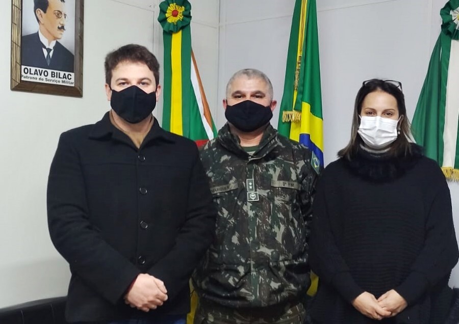 A Junta do Serviço Militar (JSM) de Veranópolis recebeu na tarde de quinta feira, dia 01 de julho, a visita do Tenente Vilson Fernando Marques, Delegado do Serviço Militar de Porto Alegre, o qual realizou Inspeção e Orientação Técnica (VOT), com a finalidade de verificar as condições de funcionamento da JSM do município. O Tenente foi recepcionado pela Secretária de Indústria e Comércio, Daiane Ambrozini Domeneghini e pelo secretário da Junta Militar, Leonir Barboza Omizzollo. Na oportunidade fez orientações para melhor atendimento nesse momento que passamos pela Covid-19, esclarecendo o decreto da Presidência da República na qual explica a desobrigação da realização do Juramento a Bandeira no atual momento de crise sanitária. DECRETO Nº 10.538, DE 3 DE NOVEMBRO DE 2020 Desobriga o conscrito dispensado do Serviço Militar Obrigatório de participar da cerimônia de juramento à Bandeira Nacional, em caráter emergencial e temporário, durante a vigência da declaração de emergência de saúde pública de importância internacional decorrente da covid-19. Link de acesso: a href="https://www.in.gov.br/en/web/dou/-/decreto-n-10.538-de-3-de-novembro-de-2020-286049060" https://www.in.gov.br/en/web/dou/-/decreto-n-10.538-de-3-de-novembro-de-2020-286049060/a