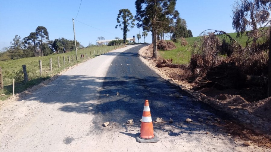 A Prefeitura de Veranópolis, por meio da Secretaria de Infraestrutura, está realizando o asfaltamento na estrada que dá acesso a comunidade de São José da 1ª. Os serviços de terraplanagem da via, bem como, a base para recebimento do asfalto já foram realizados e na semana que passou iniciou a aplicação da camada asfáltica. Será asfaltado um quilômetro da estrada, que terá a largura de 6 metros. Investir no interior do município, é investir no desenvolvimento de Veranópolis. Foto: Silvano Zandoná