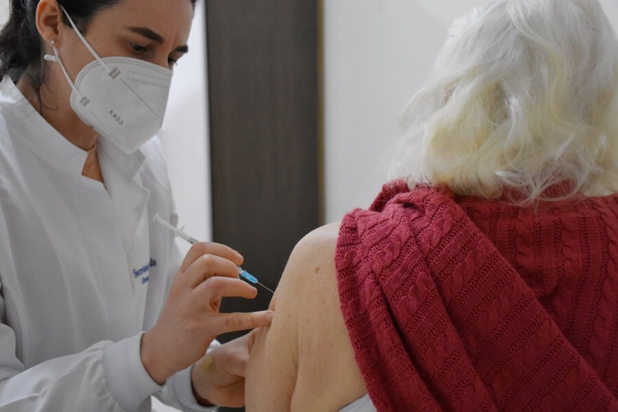 Seguindo as orientações do Ministério da Saúde e da Secretaria Estadual, equipe de vacinadoras do município de Veranópolis esteve na semana que passou realizando a aplicação da dose de reforço da vacina contra a Covid-19 para os idosos que estão nas instituições de longa permanência. Os longevos da Casa Lar São Francisco, que já haviam recebido as duas primeiras doses, foram vacinados na sexta-feira, dia 17 de setembro, com a terceira dose do imunizante que protege contra o coronavírus. Mais proteção à saúde dos idosos da Terra da Longevidade. Foto: Leticia Fracasso
