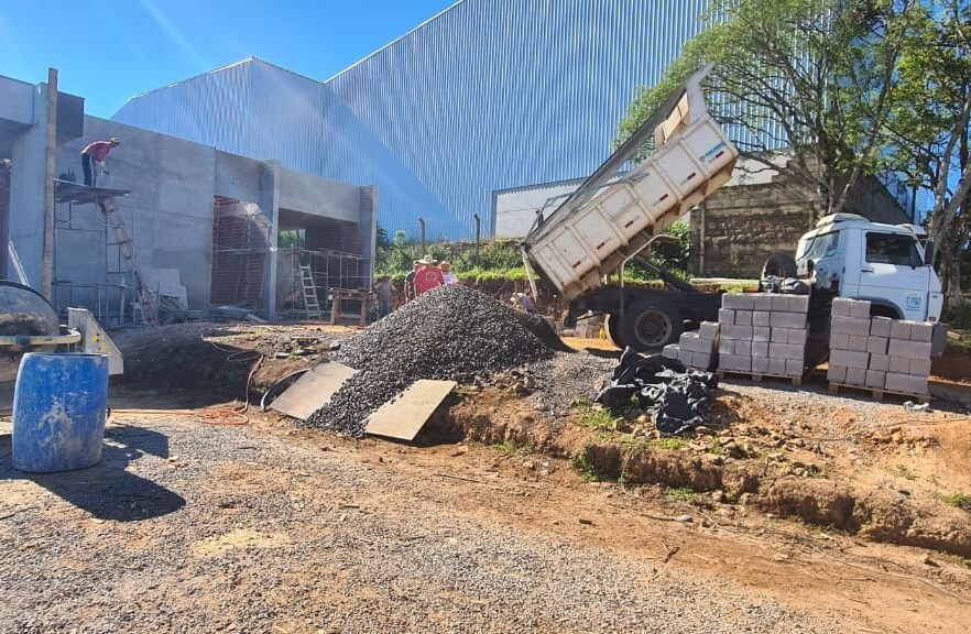 A Administração Municipal de Veranópolis visa o desenvolvimento do município e com base em seus programas oferece benefícios e incentivos às empresas. No dia 27 de outubro a Secretaria de Indústria e Comércio realizou uma visita à empresa Metalúrgica Golden Art´s Ltda - MGA, localizada na Rua 04, no Distrito Industrial. Oportunidade onde acompanhou obra de ampliação do refeitório e a entrega de brita. Foto: SMIC