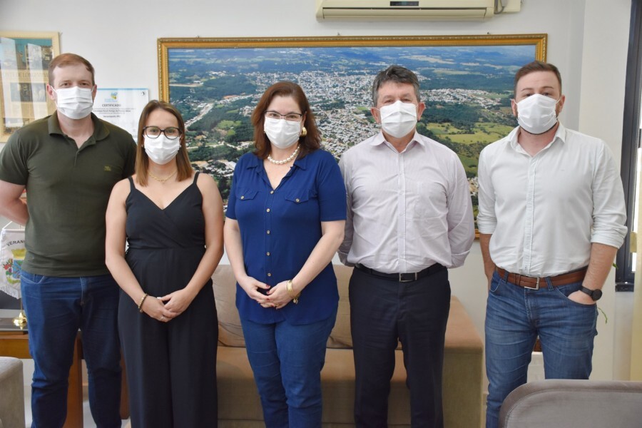 No dia 02 de dezembro, o Prefeito de Veranópolis, Waldemar De Carli, recebeu em seu gabinete a Diretora da UCS - Campus de Nova Prata, a qual apresentou o novo programa da universidade, o IDEAUCS. O programa IDEAUCS tem por escopo o desenvolvimento de estratégias de empreendedorismo e inovação para o município de Veranópolis. Seu objetivo é buscar e transformar ideias inovadoras em startups, fomentando a geração de benefícios para o município, suas empresas e seus munícipes. O encontro serviu para alinhar uma parceria de implantação desse projeto entre a UCS e a Prefeitura de Veranópolis. Estiveram acompanhando essa reunião os Secretários Municipais de Governo, Eliezer Dalla Costa, de Finanças, Ricardo L. Gottardo e de Industria e Comércio, Daiane A. Domeneghini. Foto: Leticia Fracasso