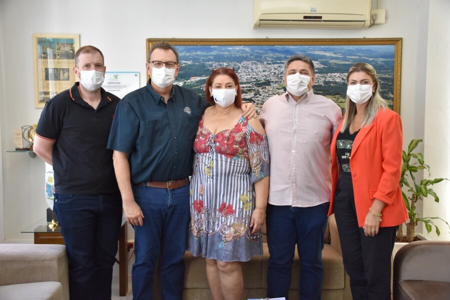 Na manhã desta sexta-feira, o prefeito em exercício, Thomas Schiemann, juntamente com a secretária da Saúde, Vanessa Calioni Bordignon, estiveram reunidos com o diretor do Hospital Comunitário São Peregrino Lazziozi, Rogério Franklin da Silva e com a diretora técnica Francesca Peruffo Gallego Schiemann. Na oportunidade, foram discutidas as ações de enfrentamento ao covid-19, diante do aumento expressivo de casos nosúltimos dias, bem como o alinhamento das ações entre as unidades de saúde municipais e o hospital comunitário. Também foram debatidas futuras ações para os anos de 2023 e 2024. em Foto: Caroline Cesca/em