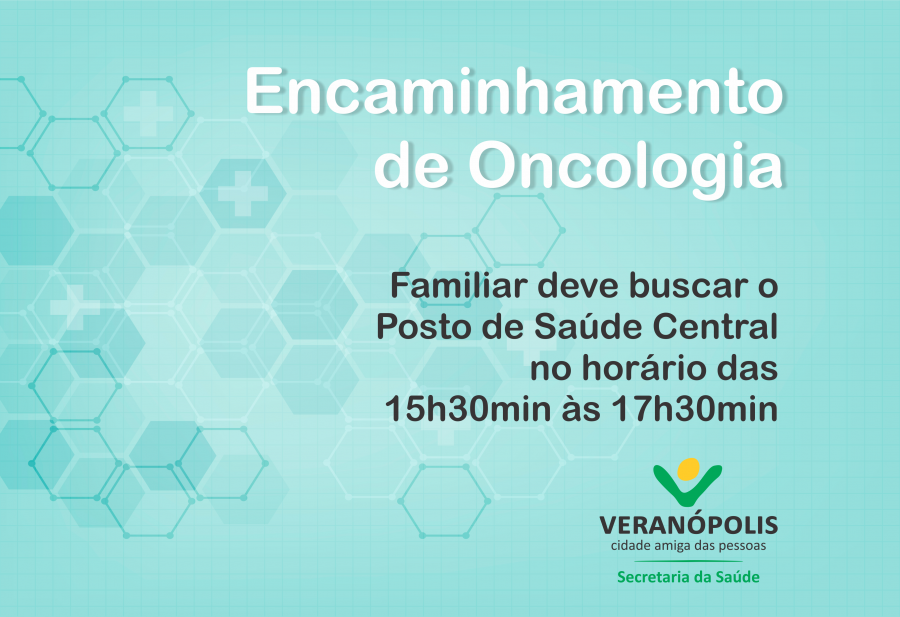 A Secretaria da Saúde de Veranópolis informa: Os pacientes que precisam de encaminhamento de Oncologia nos serviços de saúde do município devem solicitar para que um familiar faça esse procedimento. Evitando assim que a pessoa em tratamento de oncologia fique exposta a uma possível contaminação com a Covid-19. Esse serviço de encaminhamento de Oncologia vai funcionar a partir desta quarta-feira, dia 26/01, no Posto de Saúde Central, de segunda a sexta-feira, no horário das 15h30min às 17h30min.