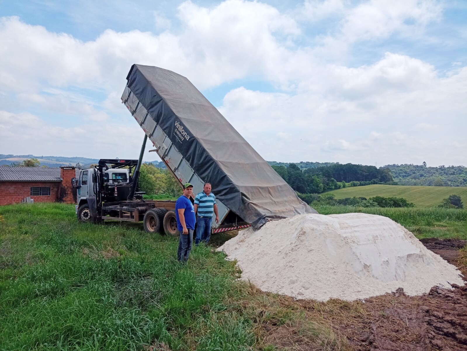 O calcário é utilizado para melhorar o solo e entre os benefícios de sua utilização na quantidade correta, por isso a parceria com o Escritório da Emater de Veranópolis que realiza o diagnóstico e valida a necessidade do produto.