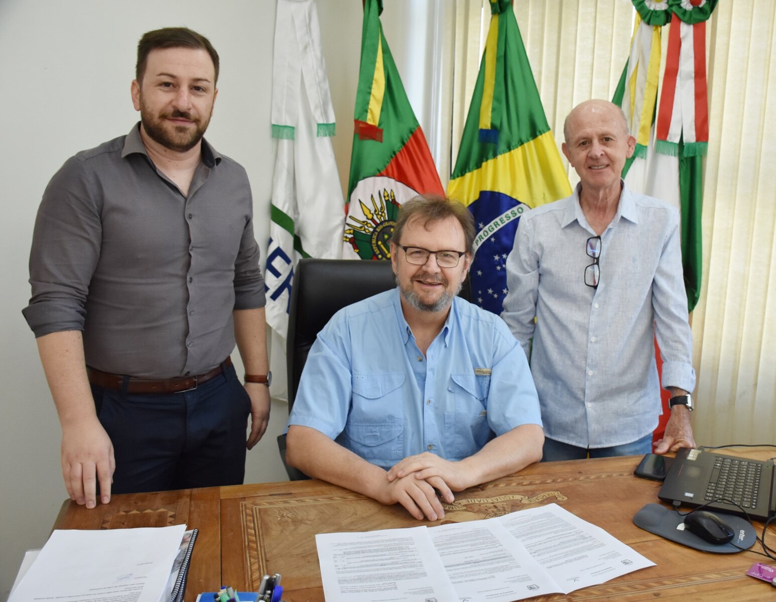 Na manhã desta quarta-feira, dia 03 de janeiro, o Prefeito em exercício de Veranópolis, Thomas Schiemann, acompanhado do Secretário de Governo, Eliezer Dalla Costa, e do Diretor de Compras, Alzir Secchi, assinou a abertura de três importantes licitações que dão continuidade ao desenvolvimento da Terra da Longevidade.