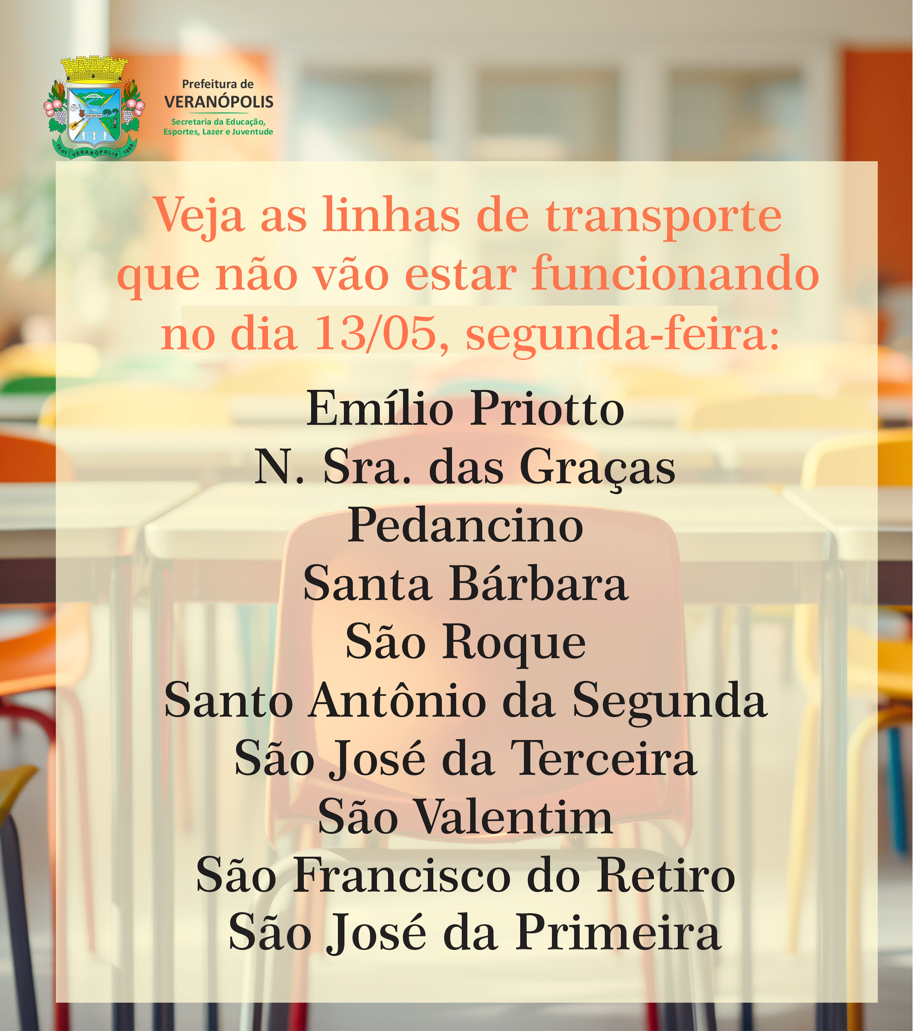 Transporte escolar que não vai estar funcionando para dia 13/05
