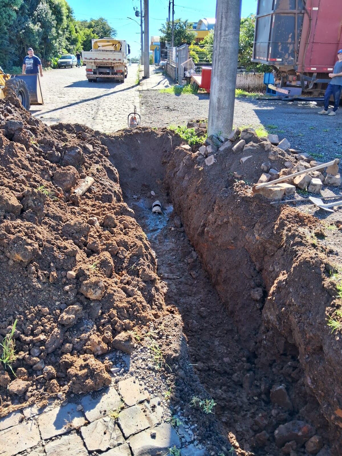 Conserto de rede de esgoto na Rua Fabiano Reschke