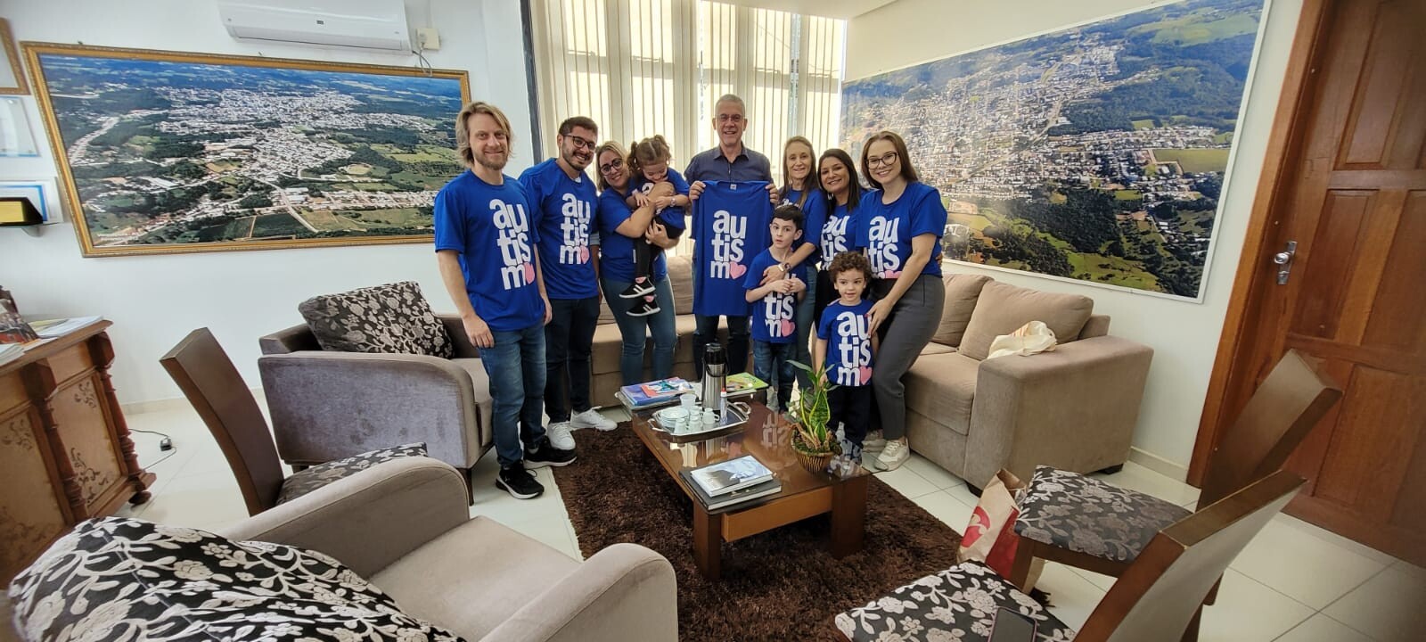 No início desta semana, o prefeito Cristiano Valduga Dal Pai e o vice-prefeito João Guilherme Mazetto receberam professores e alunos da Neurosentir – Centro de Atendimento Multidisciplinar, que entregaram o convite para a 2ª Caminhada pela Conscientização do Autismo.