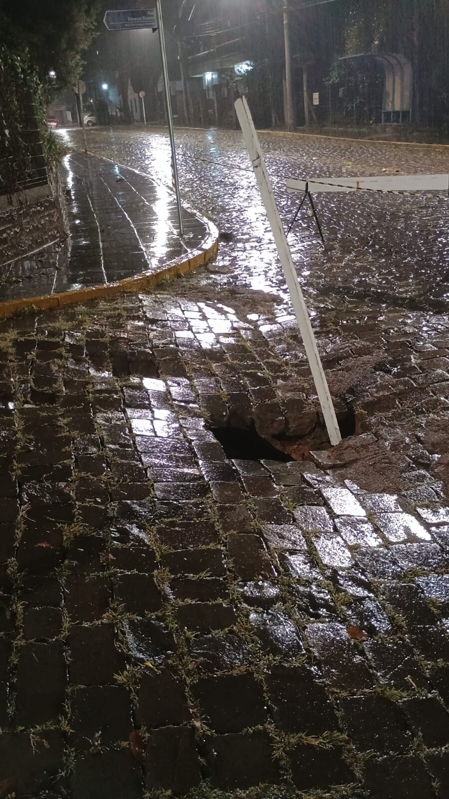A Secretaria de Infraestrutura Urbana atua na manhã desta quinta-feira (03) na Rua Barão do Rio Branco, no bairro Universal, em Veranópolis, onde um trecho cedeu devido ao alto volume de chuva. O incidente ocorreu na noite de quarta-feira (02), na esquina com a Travessa Bissani, levando ao isolamento da área.