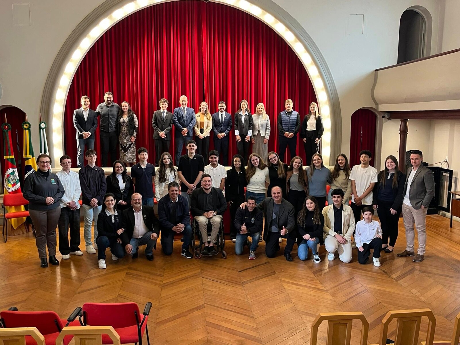 Foi realizada na manhã desta quinta-feira, dia 21 de agosto, a cerimônia de posse da Administração Estudantil 2025 de Veranópolis. O ato ocorreu na Casa da Cultura. Julio César Fracasso assumiu como prefeito Estudantil e Anthonia Maronezi como vice-prefeita. Eles deram posse aos seus Secretários Municipais: