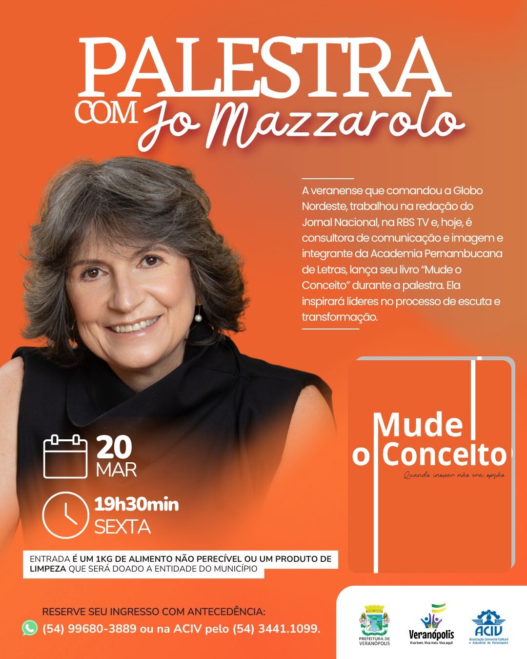 No dia 20 de março, às 19h30, a jornalista e consultora de comunicação Jô Mazzarolo estará no Auditório da ACIV para uma palestra especial que promete inspirar.