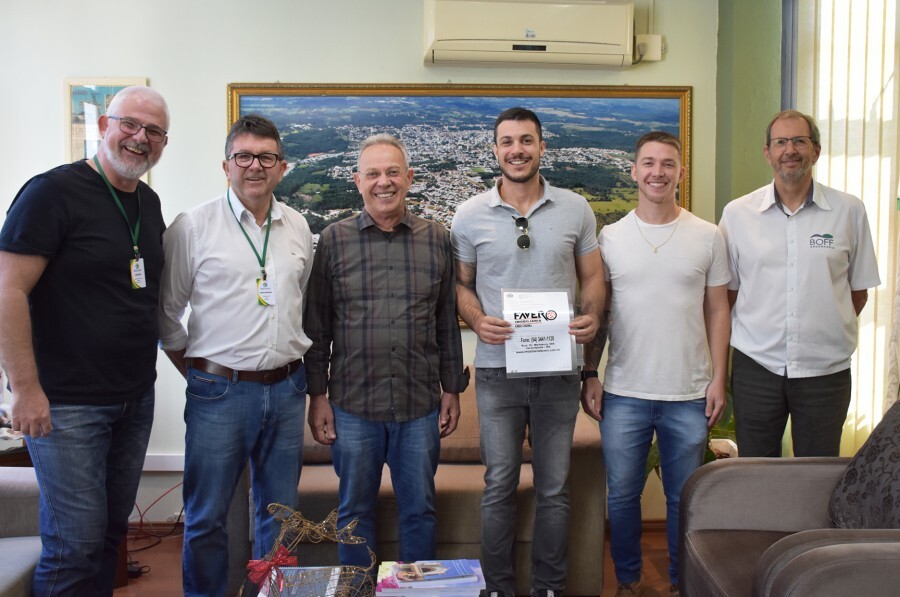 Naúltima quarta-feira, 18 de dezembro, o Prefeito Municipal Waldemar de Carli recebeu a empresa Imobiliária Favero LTDA. Na oportunidade, foi entregue oficialmente a liberação definitiva e total do empreendimento Cemitério Eternitá. em Fotos: Carolione Cesca/em