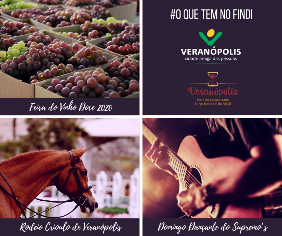 strong Confira a programação do final de semana em Veranópolis: Sexta 10/01 - Visitação a Relíquia de São Francisco de Assis (com visita aos enfermos), na Fraternidade de São Luiz Gonzaga e Casa Geriátrica Longevo. Após a imagem retorna a Gruta Nossa Senhora de Lourdes. Informações: Secretaria da Paróquia - (54) 3441-1604 - Acústico com Rafa Braz, no Pepper’s Pub, BR 470, km 178 (térreo do Restaurante Giratório). Informações: (54) 99114-5093 - Acústico com Sasquatch Jam - abertura do bar às 18h30min, no Zeppelin Rock Bar, Av. Pinheiro Machado, 770 - centro. Informações: (54) 99654-3460 Sábado 11/01 - Feira do Vinho Doce, Uva, Artesanato, Agroindústria & Produtos Ecológicos 2020 - das 8h às 11h30min, na Praça XV de Novembro - Rua Coberta. Informações: Emater - (54) 3441-1162 / Secretaria de Desenvolvido Econômico - (54) 3441-1477 - Acústico com Pagode Classe A - abertura do bar às 17h, no Boteco do Bode, Av. Osvaldo Aranha, 1589 - São Pelegrino. Informações: (54) 99990-7437 - Missa de Lançamento da Romaria de Nossa Senhora de Lourdes e Visitação a Relíquia de São Francisco de Assis - às 19h, na Gruta Nossa Senhora de Lourdes. Informações: Secretaria da Paróquia - (54) 3441-1604 Domingo 12/01 - Missa de Despedida a Relíquia de São Francisco de Assis - às 9h, na Igreja Matriz São Luiz Gonzaga. Após a imagem será conduzida até o município de Paraí. Informações: Secretaria da Paróquia - (54) 3441-1604 - Domingo Dançante do Supremo’s, com Marcos e Francine - às 18h, no Supremo’s Restaurante e Bar, R. Vinte e Quatro de Maio, 12-192 - Centro. Informações: (54) 3441-6830 Quinta 16/01 - Rodeio Crioulo de Veranópolis, no parque Municipal Pref. Nadyr Peruffo - Parque de Rodeios (Sapopema). Realização: CTG Rincão da Roça Reúna Diariamente - Casa Saretta - Centro de Atenção ao Turista BR 470, km 177, nº 2201. Informações: (54) 3441-5953. Segunda a sexta-feira das 08h às 14h. Sábados e Domingos das 10h às 16h. - Casa Saretta Artesanato BR 470, km 177, nº 2201. Informações: (54) 3441-7695 Segunda a sexta-feira das 08h30min às 11h30min e das 13h30min às 17h. Sábados e Domingos das 09h às 17h. Dia 31/12 das 08h às 11h30min e das 13h30min às 16h. De Segunda a Sexta-feira - Biblioteca Pública Mansueto Bernardi Av. Pinheiro Machado, 770 - centro (hall de entrada da SOAL). Segunda a sexta-feira das 08h às 14h. Informações: (54) 3441-7615 Toda Quarta e Sábado - Feira Ecológica com agricultores de Veranópolis, no caramanchão ao lado do Salão N.S. de Lourdes: Quartas-feiras das 12h30min às 16h / Sábados das 07h às 12h. Informações: Secretaria de Desenvolvimento Econômico: (54) 3441-1477