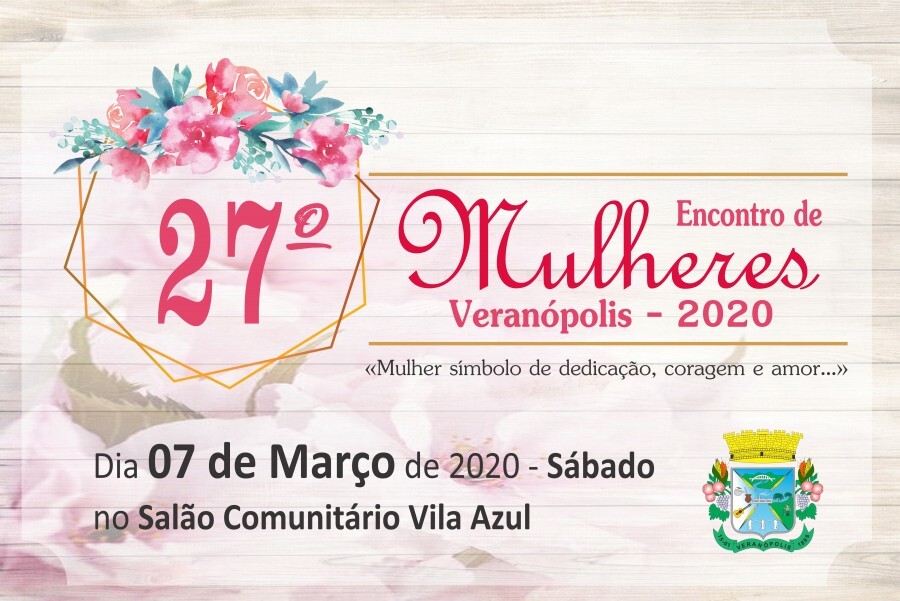 Dia 07 de março, sábado, acontece o 27º Encontro de Mulheres de Veranópolis. O tradicional evento, realizado em comemoração ao Dia da Mulher, acontece neste ano na comunidade de Vila Azul. A programação inicia às 19 horas com recepção. Às 19h30min haverá a abertura oficial e após será servido o jantar. A animação da noite fica garantida com o baile. Os ingressos já estão à venda no Escritório Paroquial e na Emater, no valor de R$25 adulto e R$12 para crianças (de 5 à 12 anos). As mulheres moradoras das comunidades do município foram convidadas diretamente pela Emater. Lembrando que será disponibilizado transporte das demais localidades até o evento. O 27º Encontro de Mulheres de Veranópolis é uma realização da Prefeitura de Veranópolis, Câmara de Vereadores, Primeira Dama, Secretarias Municipais de Desenvolvimento Social, Habitação e Longevidade, de Desenvolvimento Econômico, de Educação, Esporte, Lazer e Juventude, de Infraestrutura e Meio Ambiente, de Turismo e Cultura, de Saúde, do Sindicato dos Trabalhadores Rurais, da Paróquia São Luiz Gonzaga, Emater/Ascar e Aciv. Todas as mulheres da Terra da Longevidade estão convidadas a participarem. Homens também serão bem vindos. "Mulher símbolo de dedicação, coragem e amor."