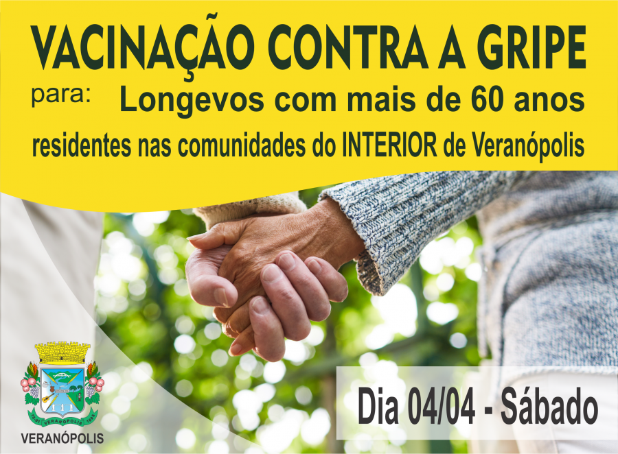 A Secretaria da Saúde de Veranópolis, informa que no próximo sábado, dia 04 de abril, a Campanha Nacional de Vacinação contra a Influenza continua nas comunidades do município. O público alvo de vacinação são exclusivamente os idosos acima de 60 anos que residem no interior, conforme listas da Secretaria Municipal. Para as pessoas que irão se vacinar é necessário levar documento de identificação e carteira de vacinação. E para garantir que a vacinação seja realmente, para os idosos residentes do interior, será necessário a apresentação de um comprovante de residência (conta de energia elétrica ou telefone). Confira as localidades e horários de Vacinação contra a gripe para os idosos que moram no interior de Veranópolis: Equipe 01 São Francisco do Retiro - 8h às 8h30min São Valentim - 8h30min às 9h Pedancino - 9h às 9h30min São Roque - 9h30min às 10h Santo Antônio da Segunda - 10h às 10h20min São José da Terceira - 10h20min às 10h40min Nossa Senhora das Graças - 10h40min às 11h Santa Bárbara - 11h às 11h30min Equipe 02 São Pedro - 8h às 8h20min Nossa Senhora do Rosário - 8h20min às 8h40min Santo Antônio - 8h40min às 9h Nossa Senhora dos Navegantes - 9h às 9h20min São Cristóvão da Ponte (Bar Colao) - 9h20min às 9h40min Lajeadinho - 9h40min às 10h10min Monte Bérico - 10h10min às 10h40min Vila Azul - 10h40min às 11h10min Equipe 03 Sapopema - 8h às 8h30min São José da Primeira - 8h30min às 9h10min Nossa Senhora Auxiliadora - 9h10min às 9h40min Nossa Senhora da Saúde - 9h40min às 10h Nossa Senhora da Paz - 10h às 10h30min Nossa Senhora das Dores - 10h30min às 11h Equipe 04 São José da Nona - 8h às 8h30min Monte Claro - 8h35min às 8h55min Nossa Senhora da Glória - 9h10min às 9h30min Nossa Senhora da Pompéia - 9h45min às 10h Santo Isidoro - 10h15min às 10h30min São Gotardo - 10h40min às 11h