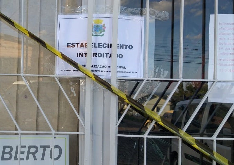 Devido aos cuidados para evitar a contaminação com o novo Coronavírus, o Governo do Estado do Rio Grande do Sul e a Prefeitura de Veranópolis estabeleceram decretos que determinam que fica proibida a abertura de estabelecimentos comerciais e prestadores de serviços em geral para atendimento ao público, restringindo apenas o desempenho de atividades estritamente de tele-entrega e "take-away" (retirada agendada). Em desacordo com essa normativa, após receber denúncias, os fiscais do município realizaram a interdição de mais um estabelecimento comercial no final da tarde desta segunda-feira, dia 13 de abril.