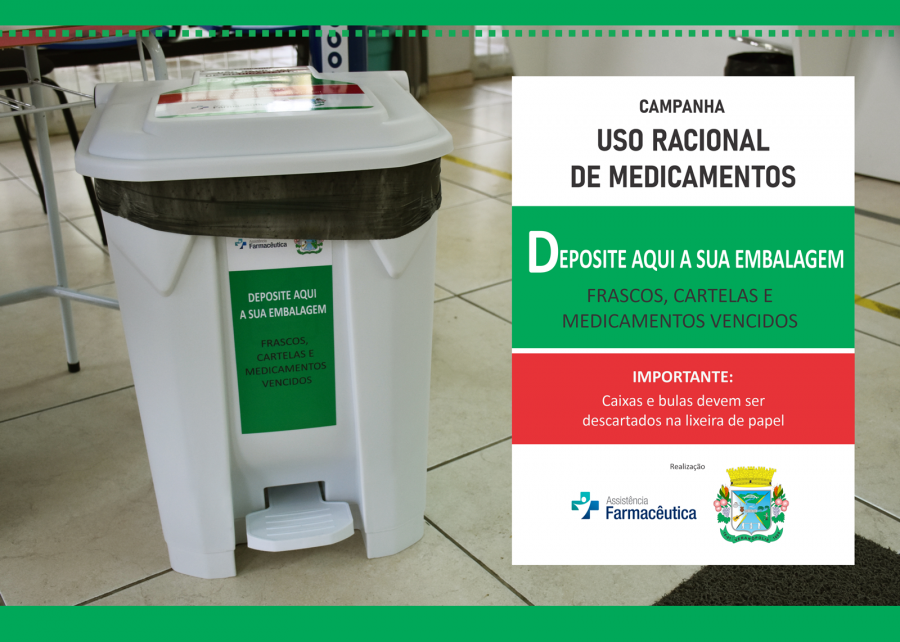 Em uma ação da Farmácia Pública Municipal, a Secretaria da Saúde de Veranópolis promove a campanha "Descarte Consciente". Em todas as unidades de saúde do município há um material intitulado "Medicamento é coisa séria", fortalecendo a informação e incentivando a população sobre as prescrições, dispensações, uso e descartes acerca de medicamentos. Há também uma lixeira personalizada, destinada ao descarte correto de frascos, cartelas e medicamentos vencidos. Restos de medicamentos sem o destino correto podem causar, por exemplo, o uso inadvertido por outras pessoas, resultando em reações adversas graves e intoxicações. Além disso, o meio ambiente é agredido com a contaminação da água, do solo e dos animais. O descarte de remédios pelo esgoto e pelo lixo comum faz com que as substâncias químicas contidas nos medicamentos cheguem aos rios e córregos, podendo contaminar a água. Já os medicamentos que são ainda novos ou que estão em boas condições de uso podem ser doados a pessoas que precisam. Para isso, verifique a validade de cada medicamento e mantenha-os em locais adequados. Se você tem estoque de remédios não utilizados na sua casa, devolva-os à Farmácia Pública Central. Os remédios doados passam por triagem antes de serem reaproveitados. Seja consciente! Descarte seus medicamentos de forma correta.