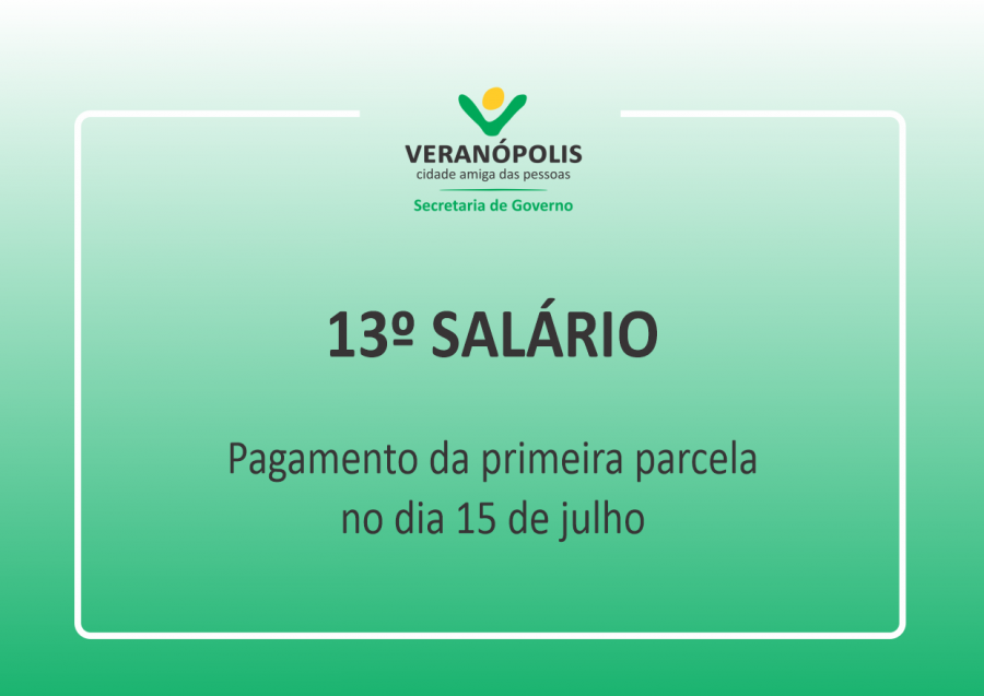 A Prefeitura de Veranópolis, por meio da Secretaria Municipal de Governo, informa que a primeira parcela referente ao 13º salário de 2021 será paga no dia 15 de julho, quinta-feira.