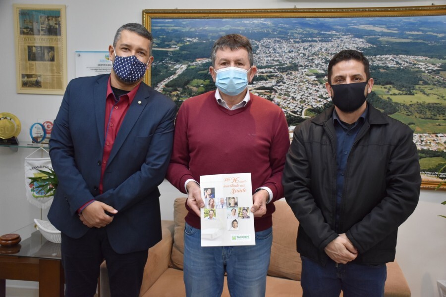O Prefeito Waldemar De Carli recebeu em seu gabinete, no dia 15 de julho, representantes do Hospital Tacchini. A visita teve como objetivo oferecer ao município de Veranópolis a prestação de serviços ambulatoriais e exames complementares a serem realizados pelo Hospital Tacchini. Participaram do encontro Michel Pires, Gerente Comercial, e Leonardo Ustra, Analista do Hospital Tacchini. Foto: Leticia Fracasso