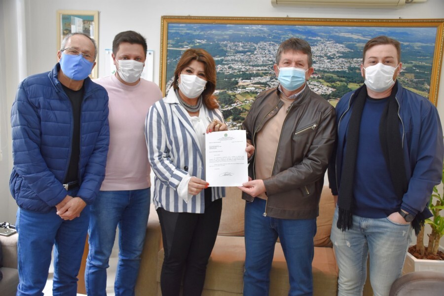 Prefeito de Veranópolis, Waldemar De Carli, recebeu na manhã desta sexta-feira, dia 13 de agosto, ofício do Deputado Federal (MDB/RS) Márcio Biolchi, referente a indicação do município como beneficiário de recursos financeiros no valor de R$ 1.000.000,00 (um milhão de reais), por meio de indicação do Deputado junto ao Relator Geral do Orçamento Geral da União. Participaram da entrega do documento ao Prefeito, a Vereadora e Presidente do MDB em Veranópolis, Mara Garib Guzzo, os Secretários Municipais: de Infraestrutura, Romeo Mattielo Tedesco e de Governo, Eliezer Dalla Costa, e o Assessor do Deputado e Coordenador Regional do MDB, Jonas Soares. Verba que será utilizada pelo poder público municipal para realizar a pavimentação asfáltica na estrada que dá acesso a comunidade de Nossa Senhora das Dores. Mais investimentos para o interior de Veranópolis, gerando mais desenvolvimento para a Terra da Longevidade. Foto: Leticia Fracasso
