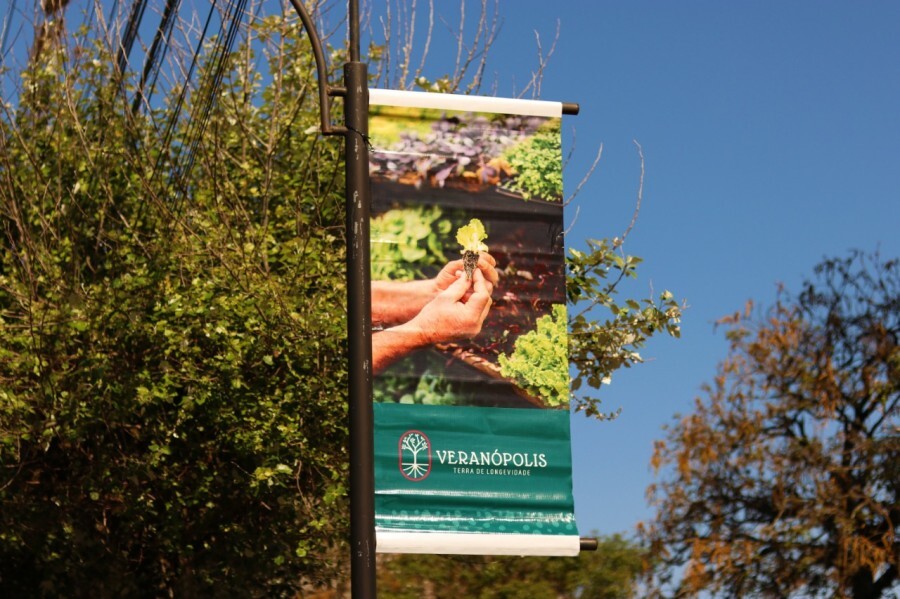 Naúltima sexta-feira, 22 de outubro, o centro de Veranópolis recebeu o colorido da divulgação turística do Município. As equipes da Secretaria de Turismo e Cultura e de Infraestrutura instalaram 29 banners na Avenida Osvaldo Aranha e ruas Júlio de Castilhos e Flores da Cunha. Os banners trazem fotos que representam os segredos da longevidade, vivências da comunidade e experiências. O material apresenta, ainda, o novo slogan do município, "Veranópolis – Terra de Longevidade" e nova marca turística representada pela árvore da vida com as raízes em formato de arcos e as cores verde, que representa renovação e crescimento, e bordô, que representa vinho e acolhimento. Os banners fazem parte da campanha de divulgação turística promovida pelo Conselho Municipal de Turismo – COMTUR e Secretaria de Turismo e Cultura e que contempla a nova marca turística, mídias sociais, anúncios em jornais e outdoors. Estesúltimos serão instalados junto à Rodovia BR 470 nos limites do município. Acompanhe a nova marca do turismo de Veranópolis e siga as mídias sociais (facebook e instagram) a href="https://www.instagram.com/visiteveranopolis/" @visiteveranopolis/a https://www.facebook.com/visiteveranopolis https://www.instagram.com/visiteveranopolis/ em Sempre que publicar uma foto de "Veranópolis - Terra de Longevidade" compartilhe com a hashtag #visiteveranopolis/em em Fotos: Júlia Freitas / Base 360º/em