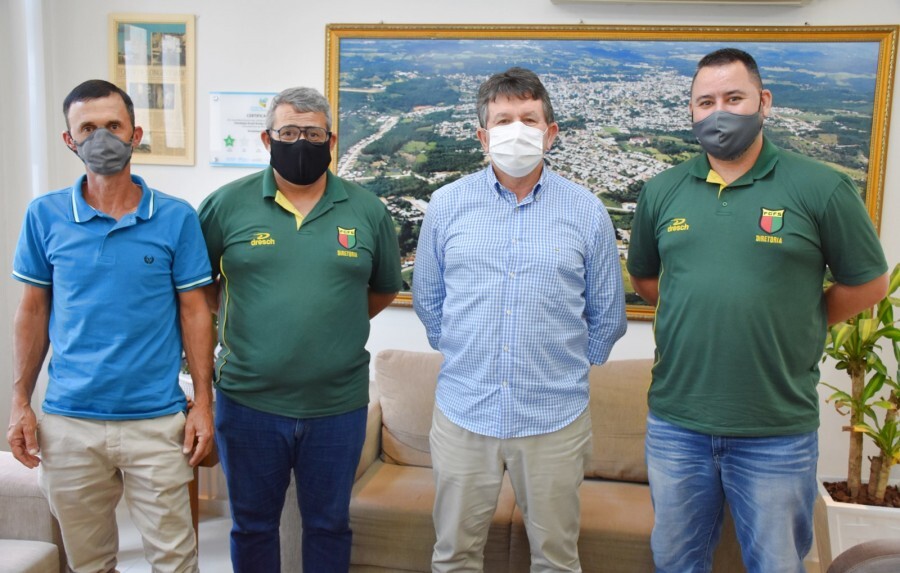 Nesta segunda-feira, dia 22 de novembro, o Prefeito de Veranópolis, Waldemar De Carli, recebeu em seu gabinete a visita da diretoria da FGFS - Federação Gaúcha de Futebol de Salão. O objetivo da visita foi o pedido de apoio da Prefeitura Municipal com a cedência do espaço para realização de um jogo da Seleção Gaúcha Feminina de Futsal em Veranópolis, que marque o encerramento da temporada. O propósito é realizar esse jogo no Ginásio Poliesportivo Leonir Farina, na Femaçã, contra um time composto por atletas da região, no dia dia 29 de janeiro. Participaram do encontro os Diretores do Futsal Feminino - FGFS de Porto Alegre: Djimi Freitas e Eduardo Fagundes, e Nadir Boeira, que acompanha o treinamento de times femininos de futsal de Veranópolis e região, idealizadores e organizadores do evento. Foto: Leticia Fracasso