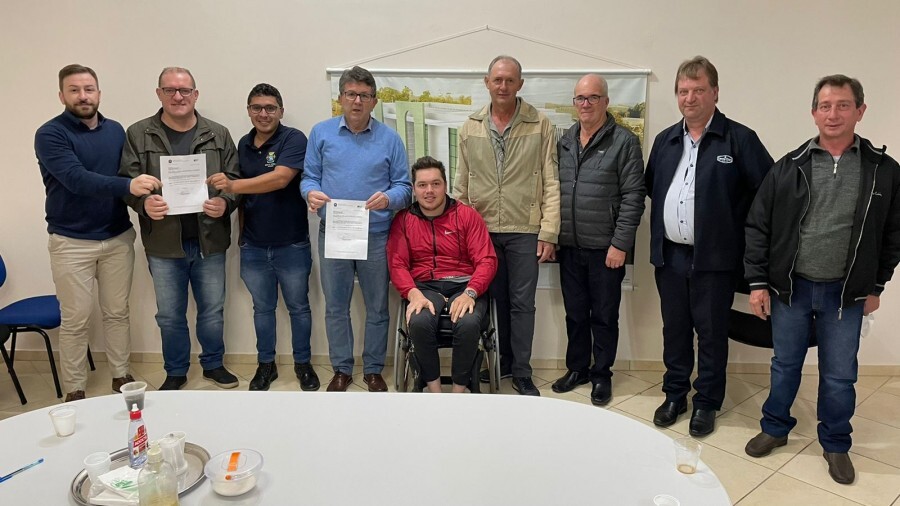 O Prefeito de Veranópolis, Waldemar De Carli, recebeu nesta terça-feira, dia 10 de maio, documento referente a indicação da emenda parlamentar do Ministério do Desenvolvimento Regional para pavimentação rural, por intermédio do Deputado Federal Danrlei de Deus Hinterholz (PSD), no valor de 300 mil reais, para pavimentação asfáltica na Rua José Francisco dos Santos (Jato de Areia). Estiveram presentes neste ato, o Presidente do PSD de Veranópolis, Moisés Pertille, os vereadores Rodrigo Costa e João G. Mazetto, e a comissão da comunidade beneficiada com o recurso. Foto: Kid Sangali