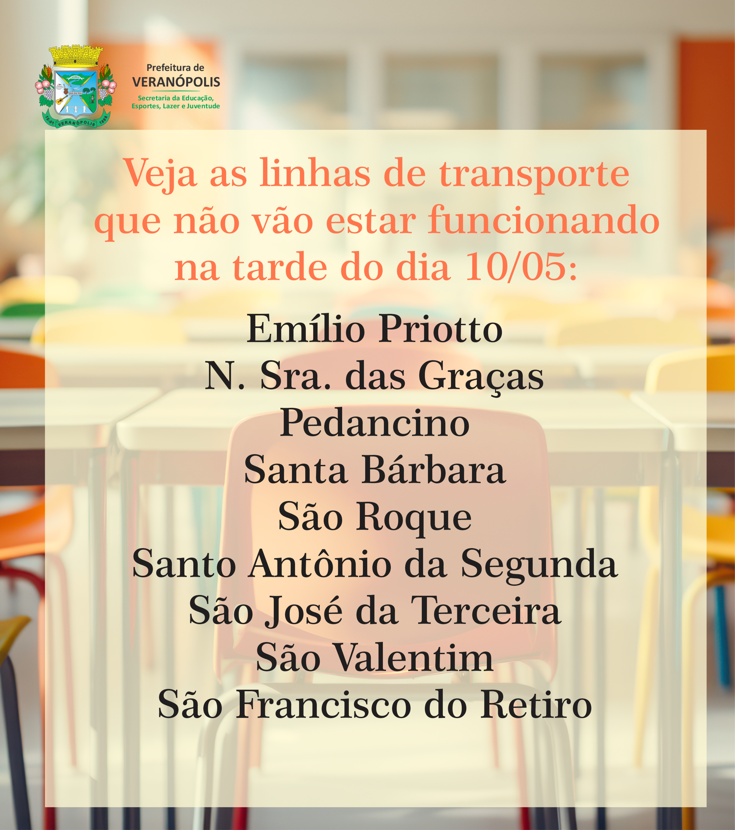 Transporte escolar que não vai estar funcionando para hoje dia 10/05