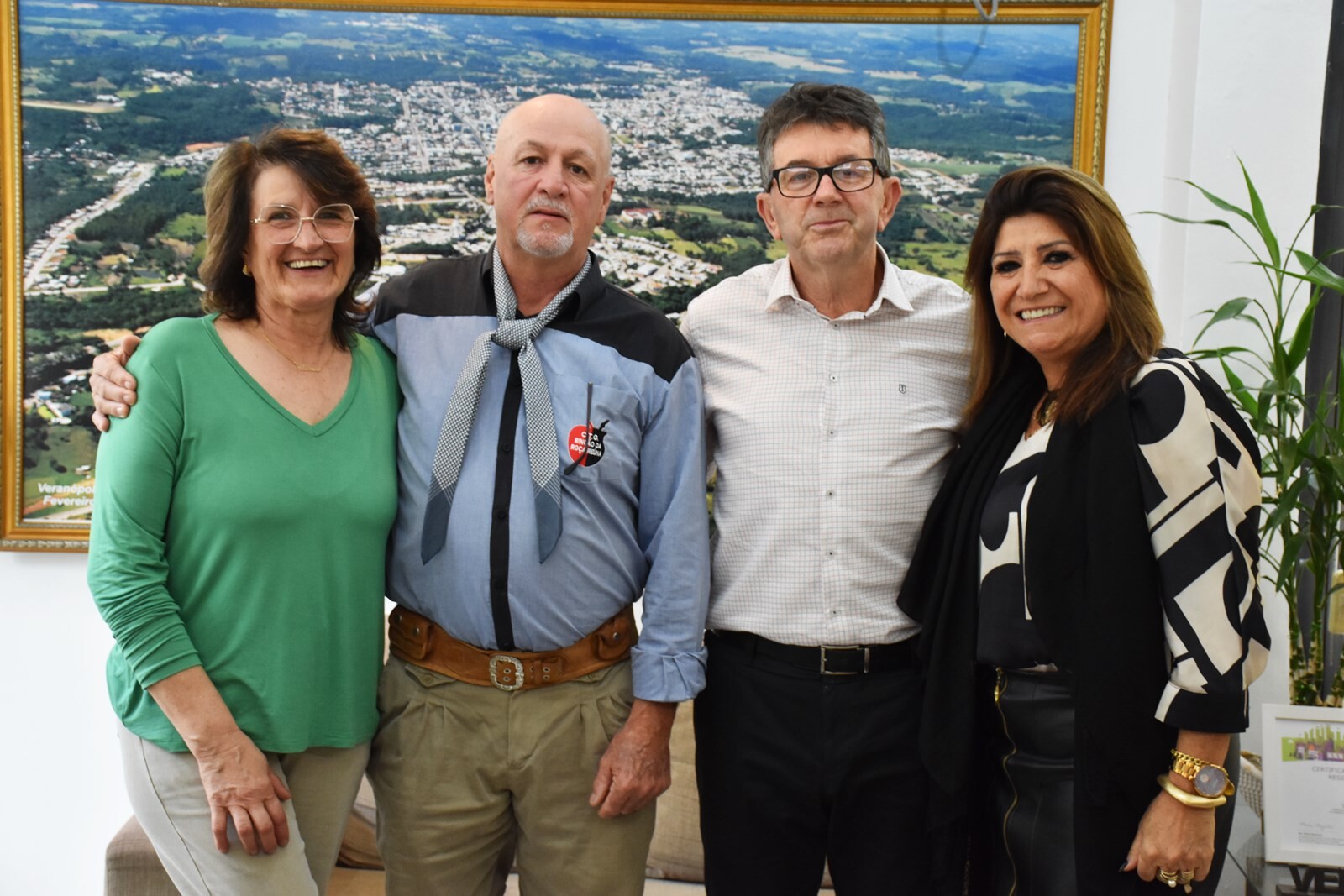 O Prefeito de Veranópolis, Waldemar De Carli, recebeu em seu gabinete nesta quarta-feira, dia 16 de outubro, o Patrão do CTG Rincão da Roça Reúna, Expedito Mesquita da Fonseca e sua esposa Cleomar Ravisoni. Encontro que contou também com a presença da Secretária de Turismo e Cultura, Mara Garib Guzzo.