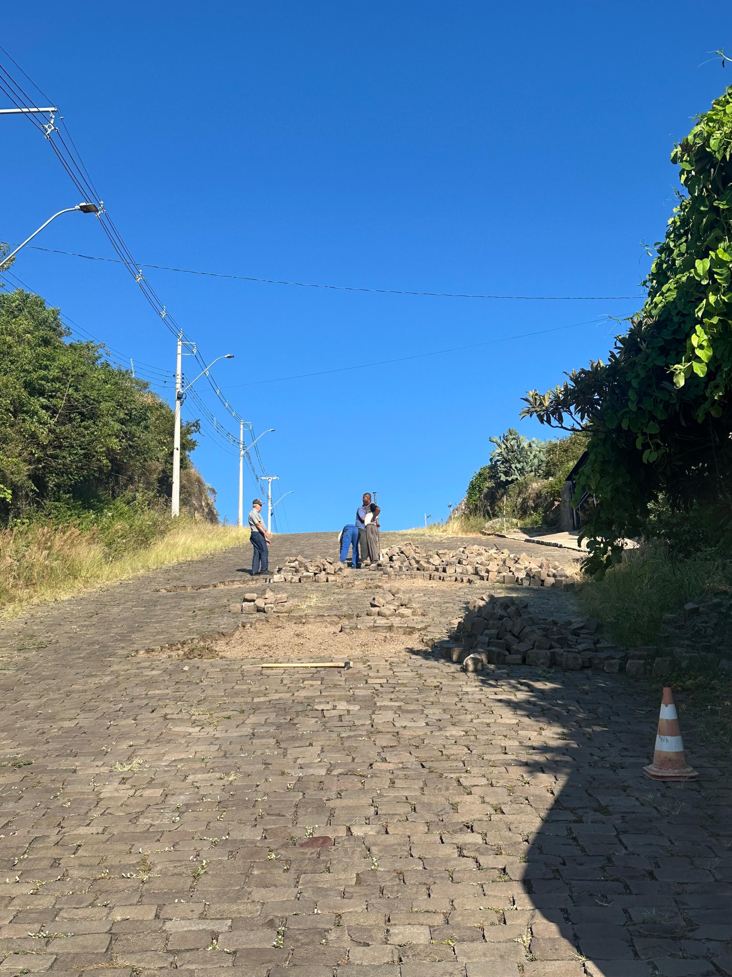 A Secretaria de Infraestrutura Urbana de Veranópolis está realizando a reposição de calçamento na Rua Armando Gazzana, no bairro Femaçã.