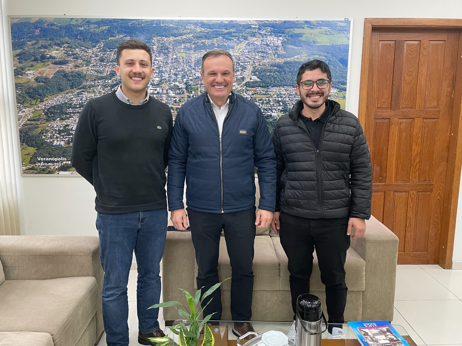 Nesta quinta-feira (5), o vice-prefeito João Guilherme Mazetto e o secretário de Desenvolvimento Econômico, João Augusto Fracasso, reuniram-se com José Scorsatto, diretor-presidente da FGTAS — Fundação Gaúcha do Trabalho e Ação Social — para tratar da renovação do convênio entre o município de Veranópolis e a FGTAS.