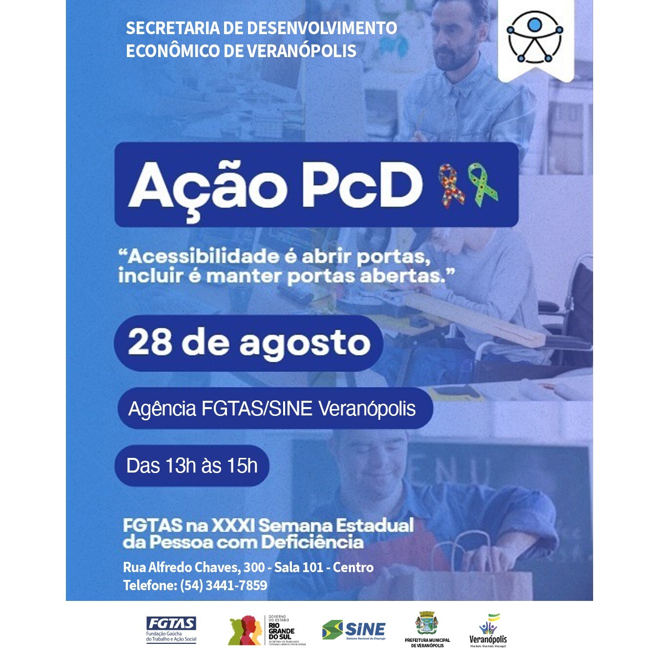 🔹 A iniciativa faz parte da XXXI Semana Estadual da Pessoa com Deficiência, promovida pelo Governo do Estado, FGTAS e SINE, com apoio da Prefeitura de Veranópolis, por meio da Secretaria de Desenvolvimento Econômico.