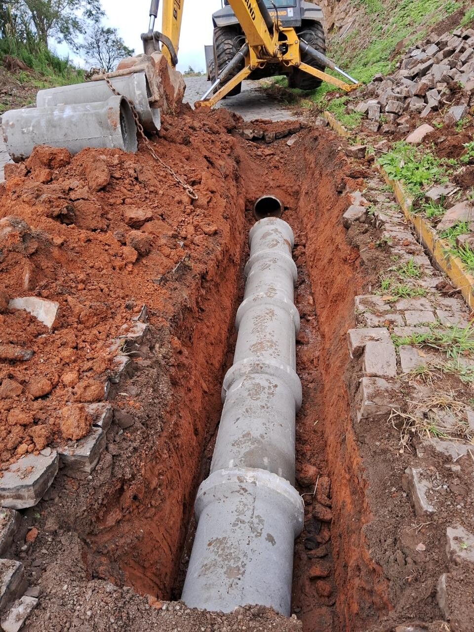 Na última semana, a Secretaria de Infraestrutura Urbana de Veranópolis executou o conserto de uma tubulação de esgoto na Rua Capitão Pelegrino Guzzo, no bairro Santo Antônio, no trecho da estrada que leva à comunidade de Santa Rita.