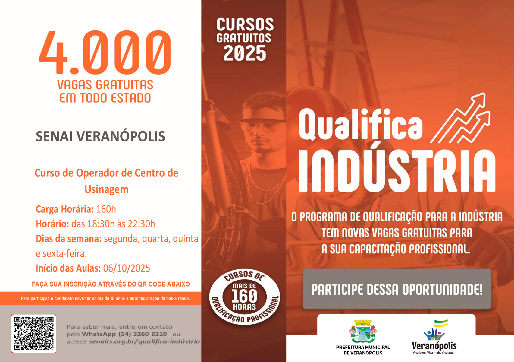 As inscrições podem ser feitas através do QR Code disponível no material de divulgação ou pelo site: senairs.org.br/qualifica-indústria