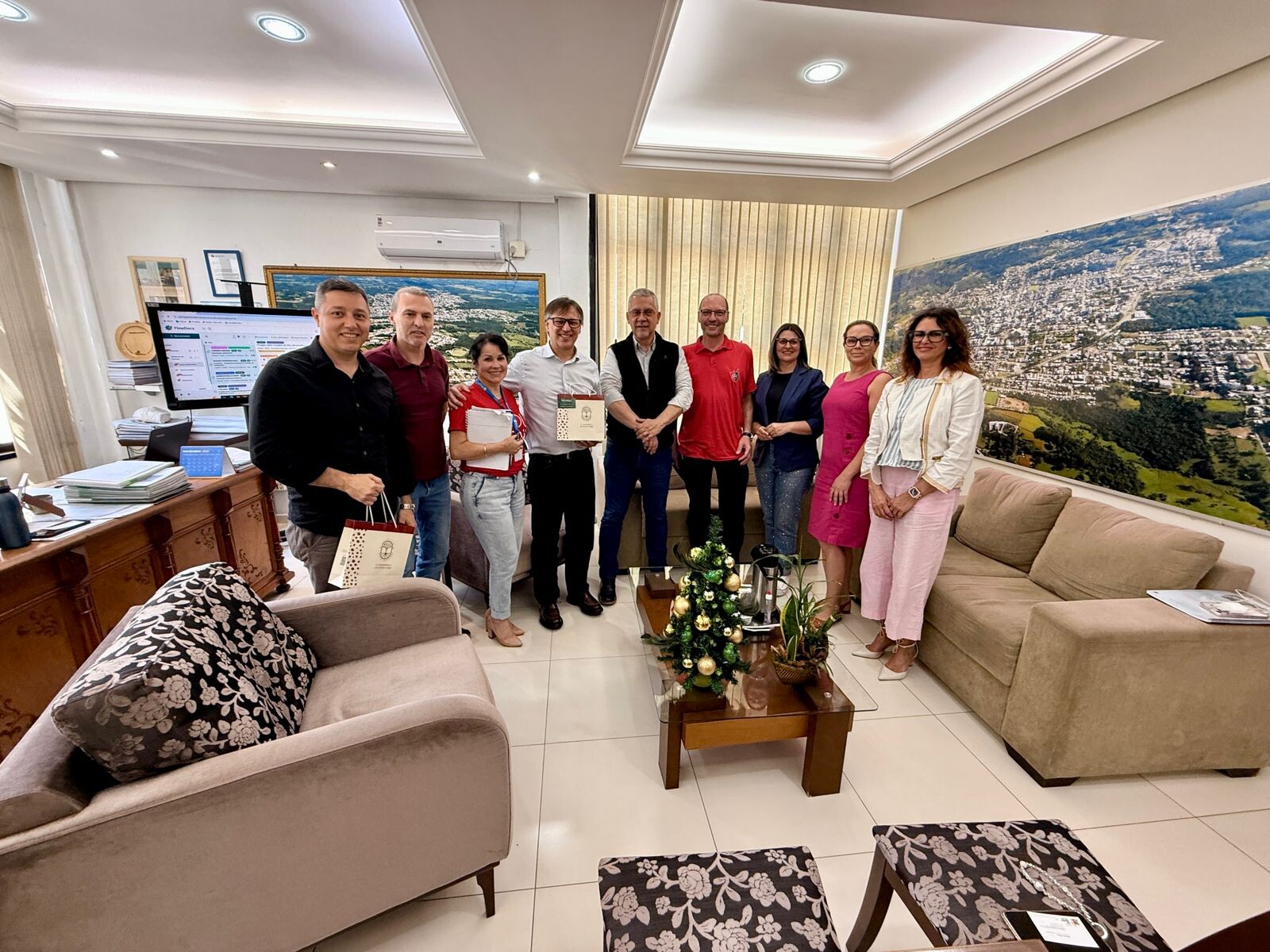 Nesta quarta-feira, 5 de novembro, o Prefeito Municipal de Veranópolis, Cristiano Valduga Dal Pai, recebeu em seu gabinete a visita de Fábio Rolim Medeiros, Assessor Parlamentar e Márcio Bosa, Chefe de Gabinete da Secretaria Estadual da Cultura do Rio Grande do Sul.