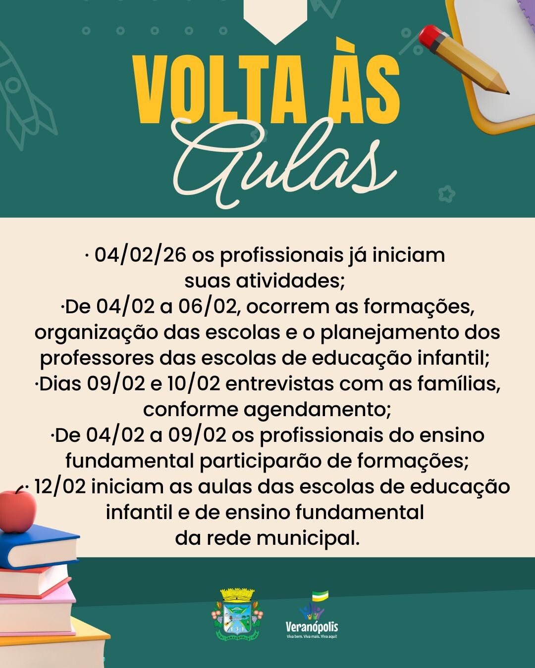 - Na data de 12/02 iniciam as aulas das escolas de educação infantil e de ensino fundamental da rede municipal.